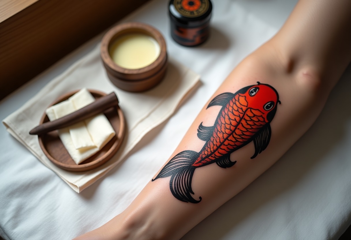 How do I know if my Japanese tattoo is healing properly using traditional methods? Proper healing follows predictable stages regardless of aftercare method. Days 1-3 show mild swelling, some fluid weeping, and tendernessânormal inflammatory responses. Days 4-7 involve scabbing formation and reduced swelling; scabs should remain flexible, not hard or cracked. Weeks 2-3 show gradual scab shedding and possible light peeling, similar to sunburn recovery. Any signs of excessive redness, increasing pain after day 3, pus formation, red streaking from the tattoo, or foul odors indicate infection requiring immediate professional medical attention. Traditional methods should produce the same healing timeline as modern approachesâthe difference lies in gentleness and long-term skin health rather than healing speed.